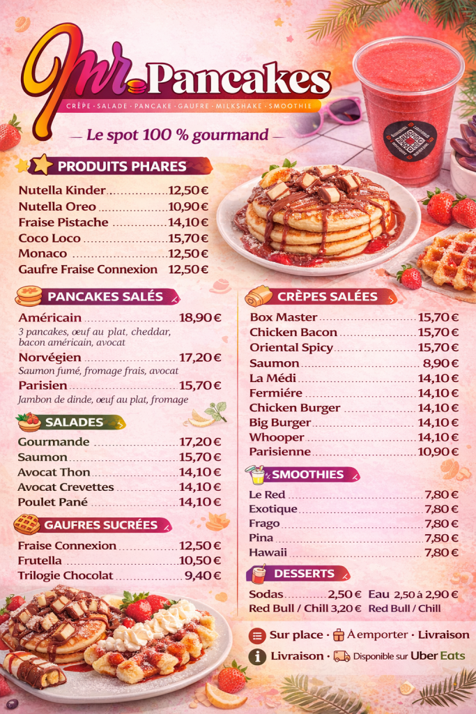 Plus qu’un simple restaurant, Mister Pancakes est une adresse conviviale où l’on se retrouve pour bruncher, déjeuner ou partager une pause gourmande dans une atmosphère chaleureuse et sincère.